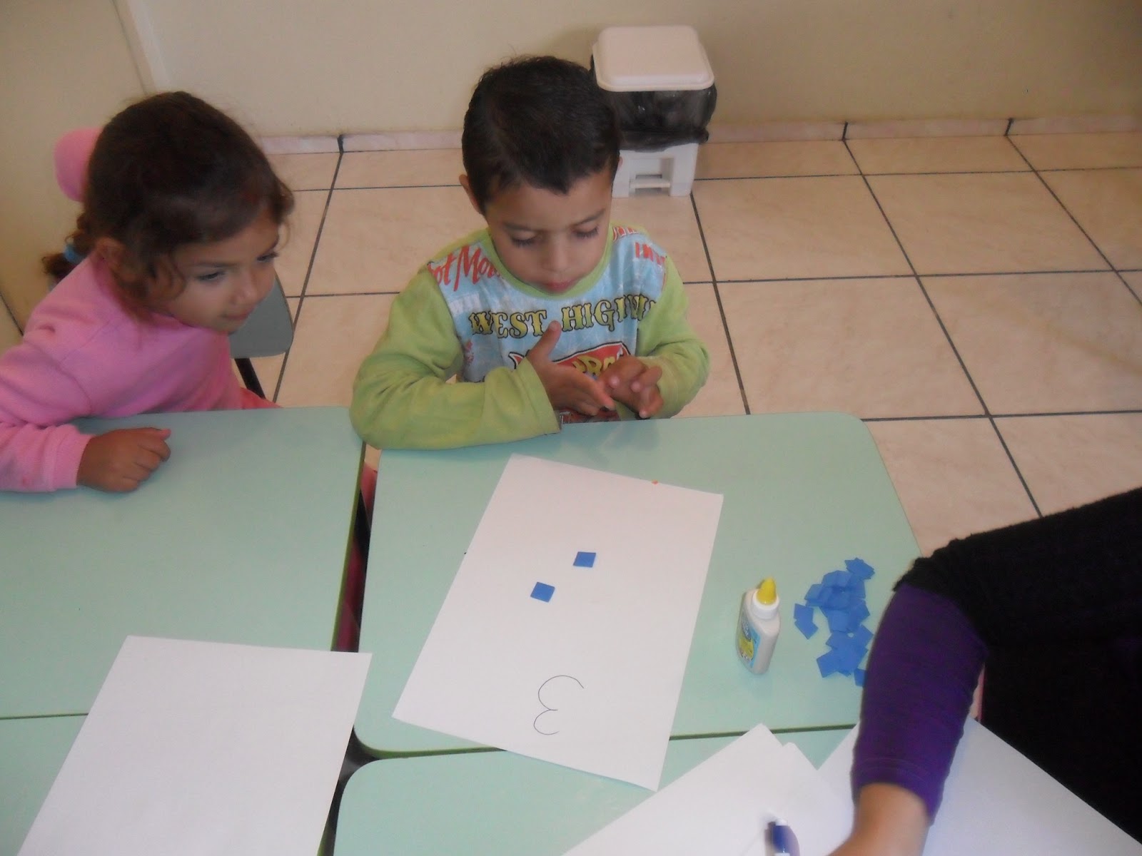 Os pequenos aprendendo os primeiros conceitos de números e quantidades.