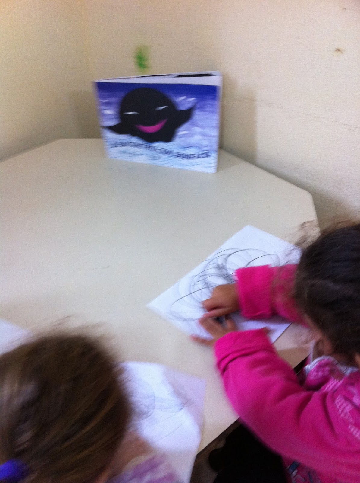 O Maternal I juntamente com a professora Elisabeth e as atendentes Marjorie e Andrisa no período da manhã realizaram atividade que chamou Qual o tamanho da baleia? , ainda trabalhando o livro " Encontro com Bonifácio.
